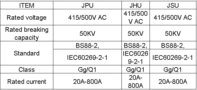 J wedge fuse is according with GB13539, IEC60269 and BS88 standard.