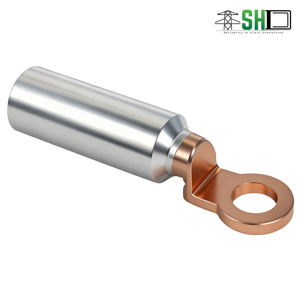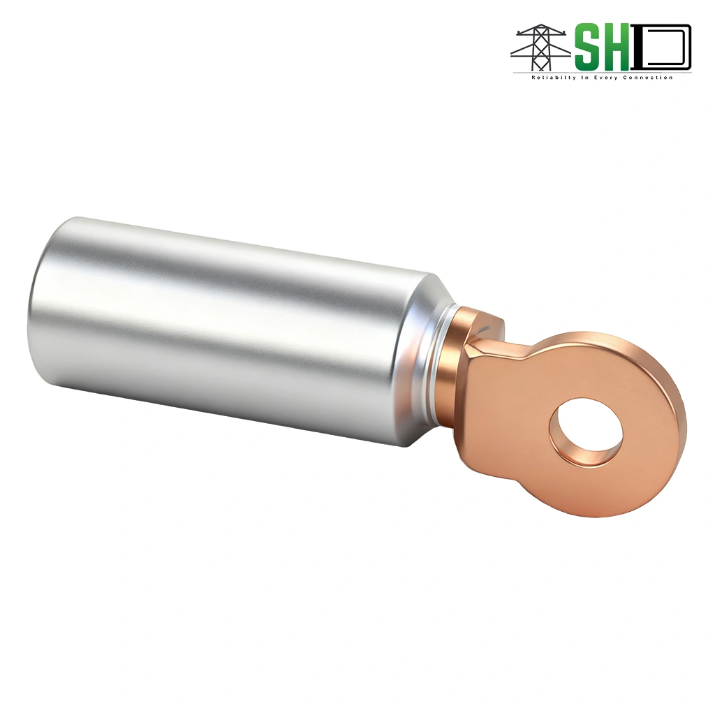 DTL series aluminum copper connection terminals are suitable for aluminum core cables of power distribution devices and transition connectors of electrical equipment. DL Aluminum is used for aluminum terminal connection of aluminum core cables and electrical equipment. DT Copper terminal Used for electrical devices with copper terminals. DT copper terminal for copper core cable and electrical equipment copper terminal connection, the product adopts friction welding process, our company supply copper aluminum terminal and wire clamp products have the following characteristics: high welding strength, excellent electrical performance, electric couple corrosion resistance, long service life, never break, high safety.